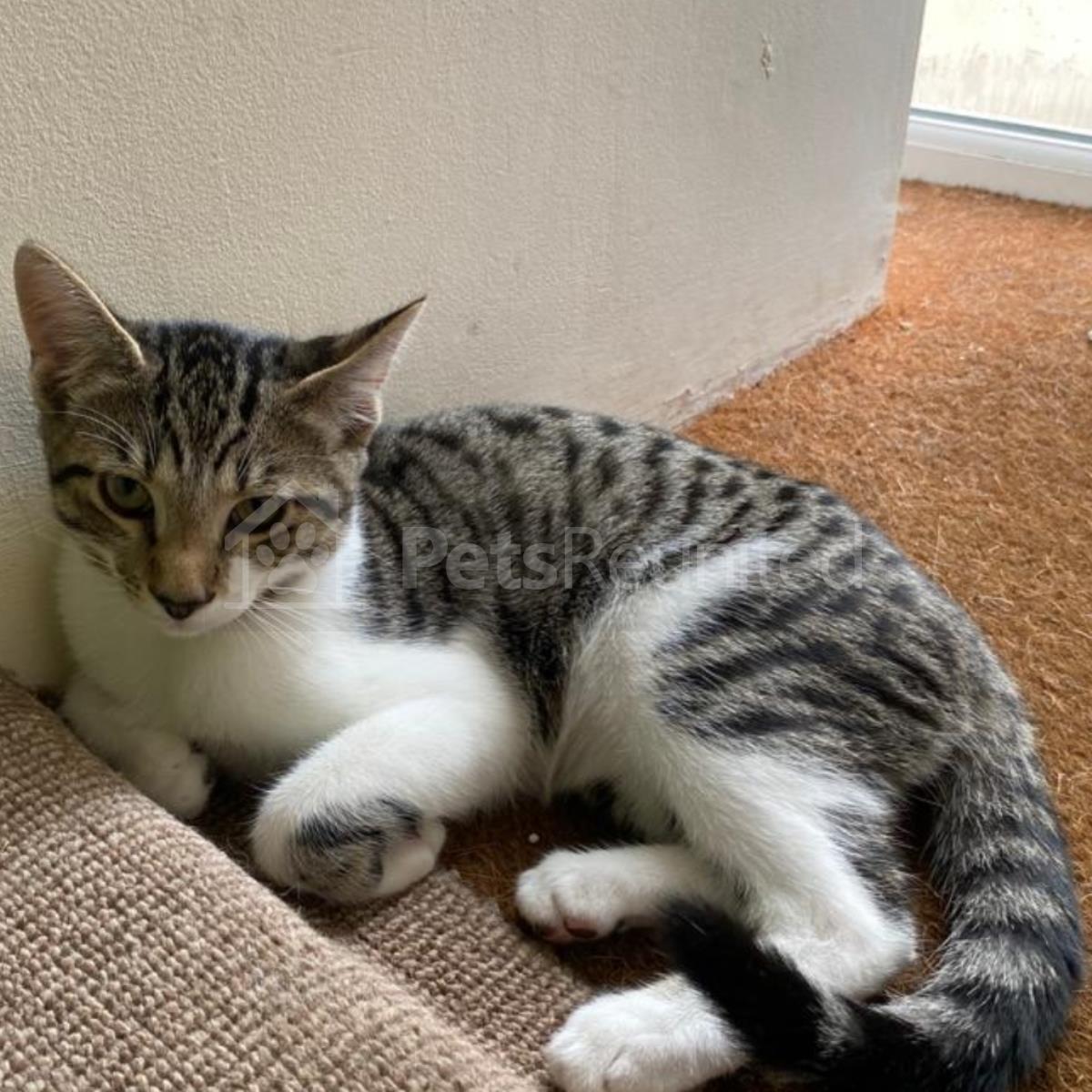 Grey/White Domestic short-haired cat