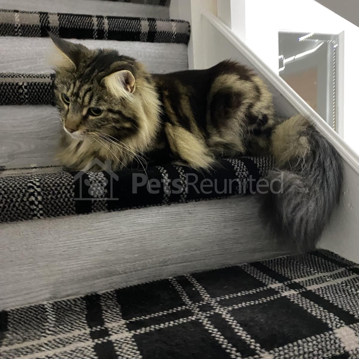Brown, white, tan. green eyes cat