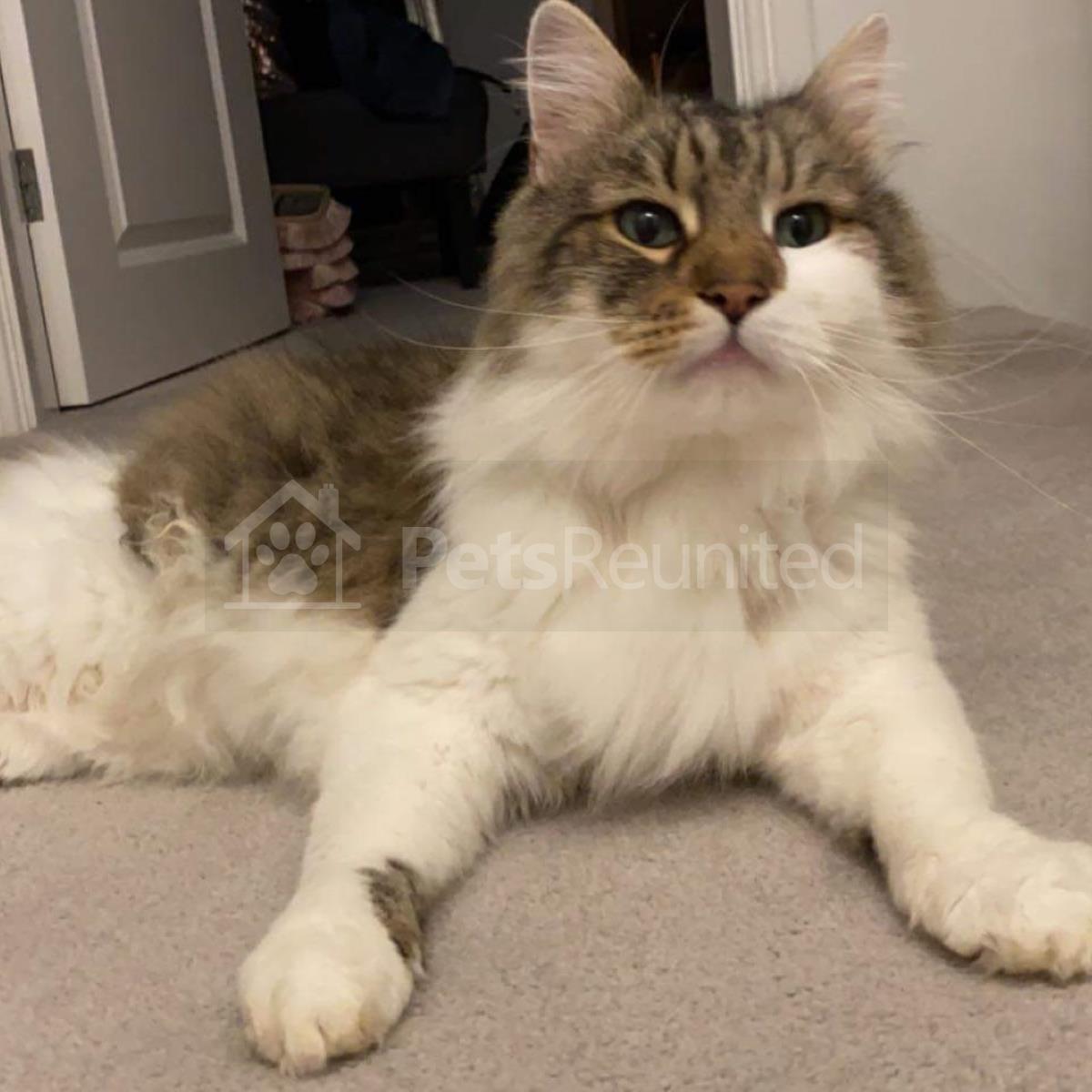 Tabby and white Domestic long-haired cat