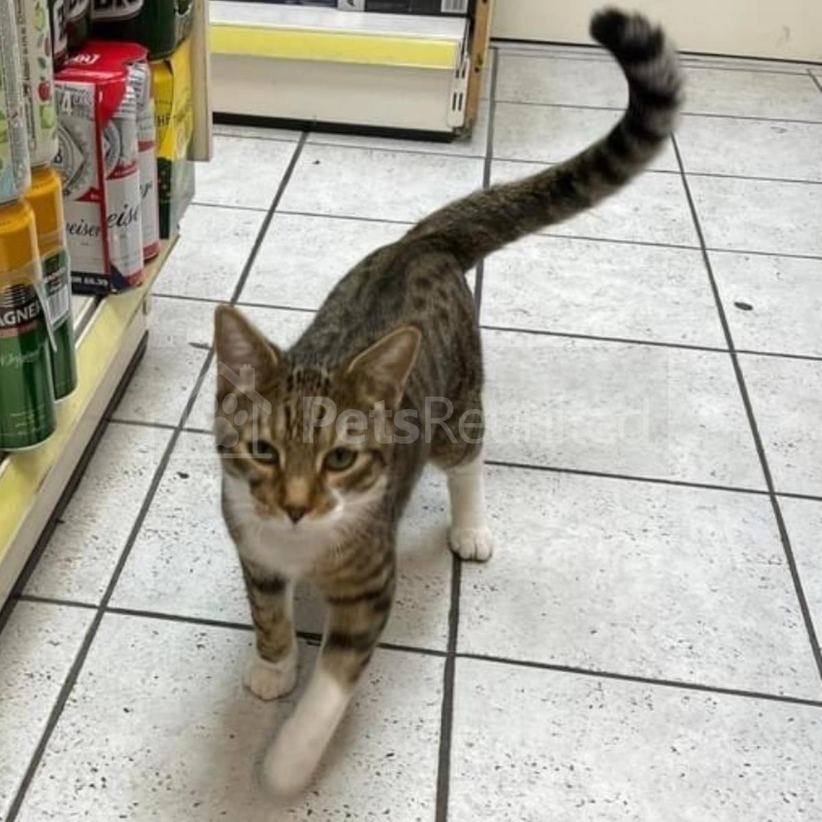 Tabby and white Domestic short-haired cat