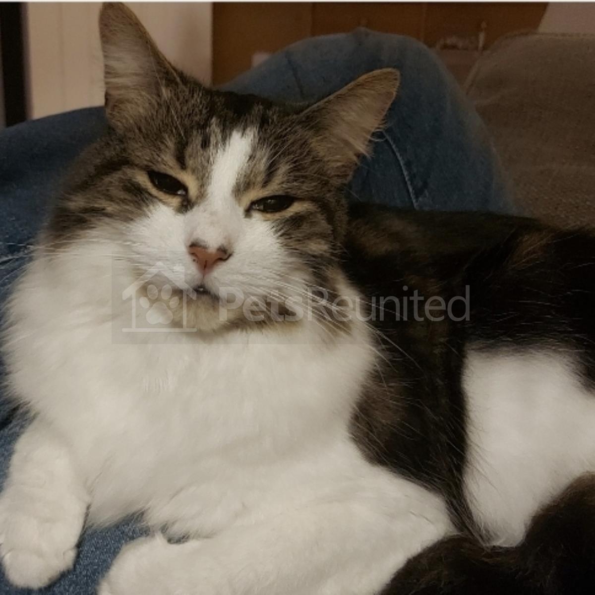 Grey/White Domestic short-haired cat