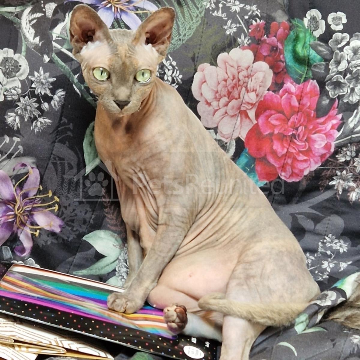 Tortie/blue - looks violet Sphynx cat