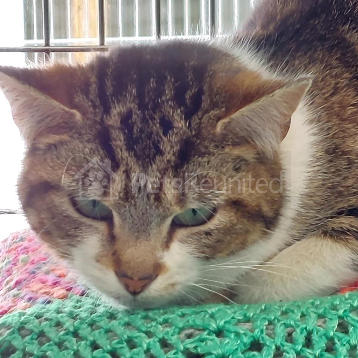 Tabby and white Domestic short-haired cat