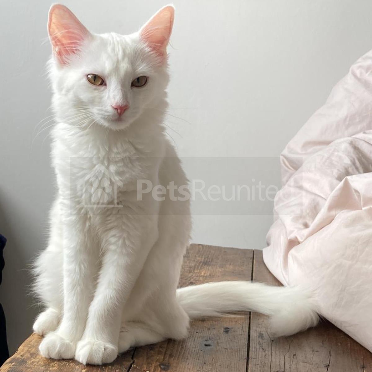 White Domestic long-haired cat