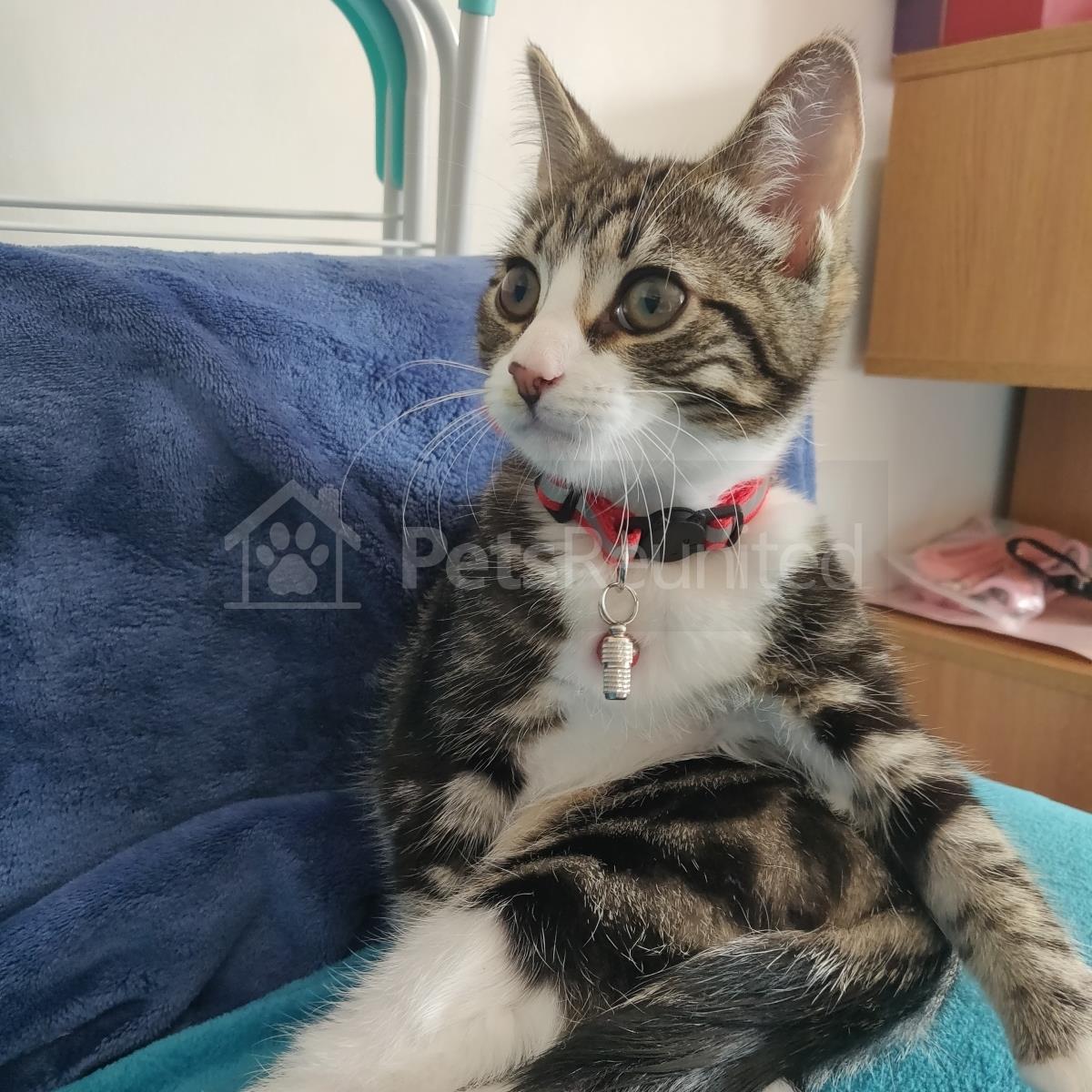 Tabby and white Domestic short-haired cat