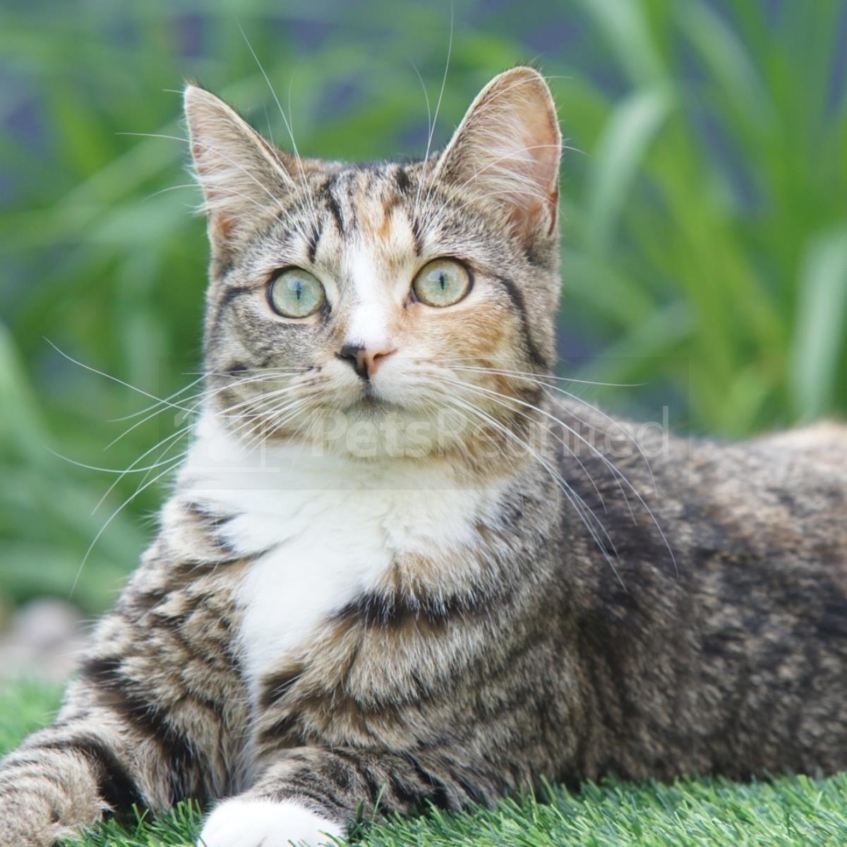 Tortoiseshell & white Domestic Shorthair (DSH) cat