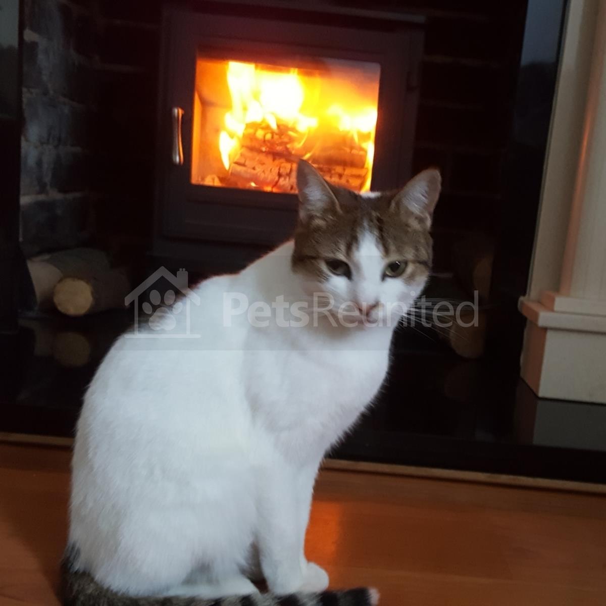 Tabby and white Domestic short-haired cat
