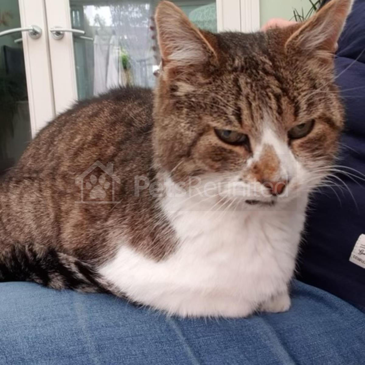 Tabby and white Domestic short-haired cat