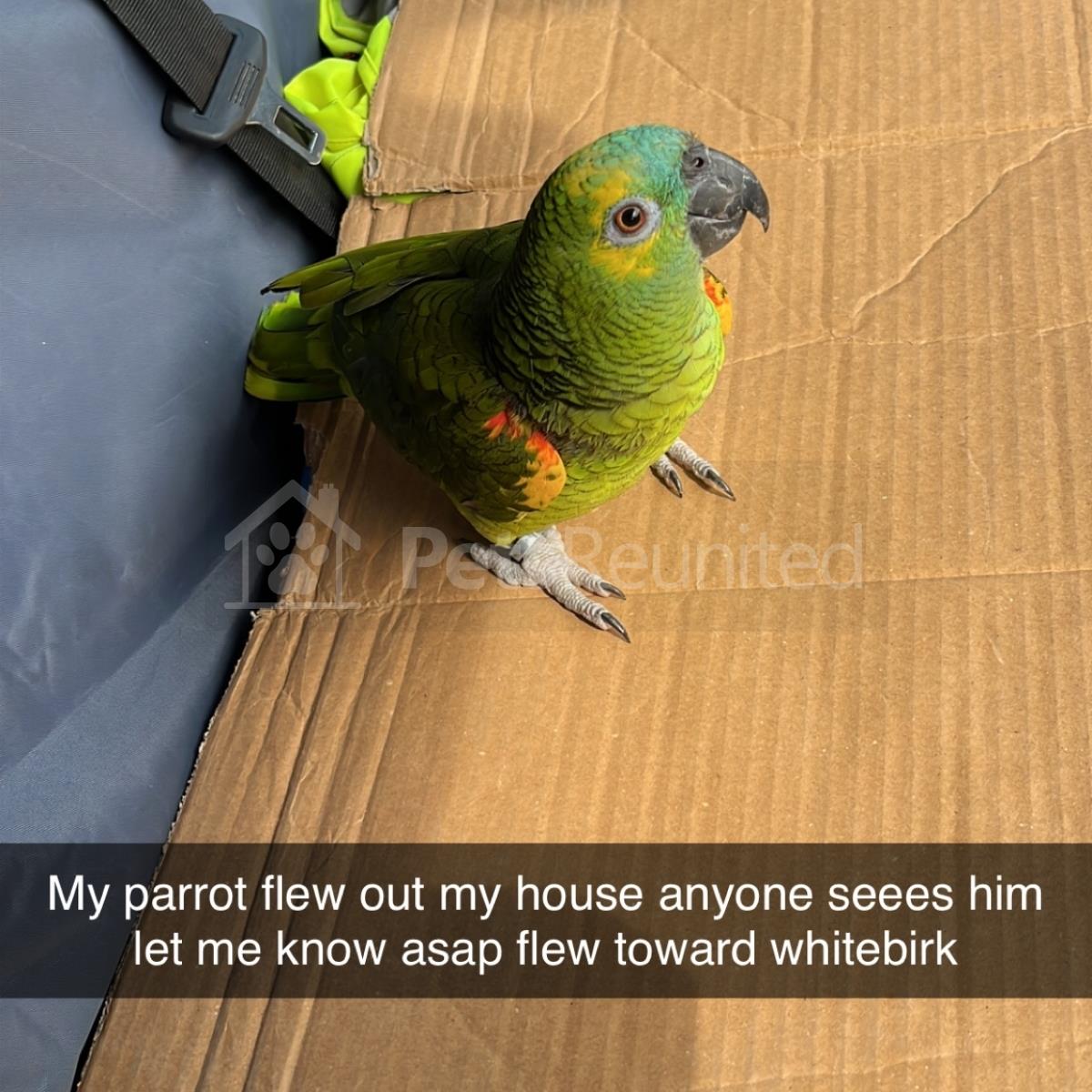 Green with blue yellow head Amazon parrot