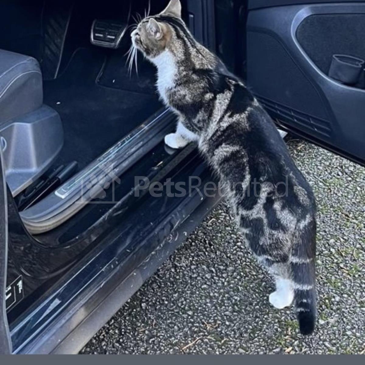 Tabby with white tipped tail cat