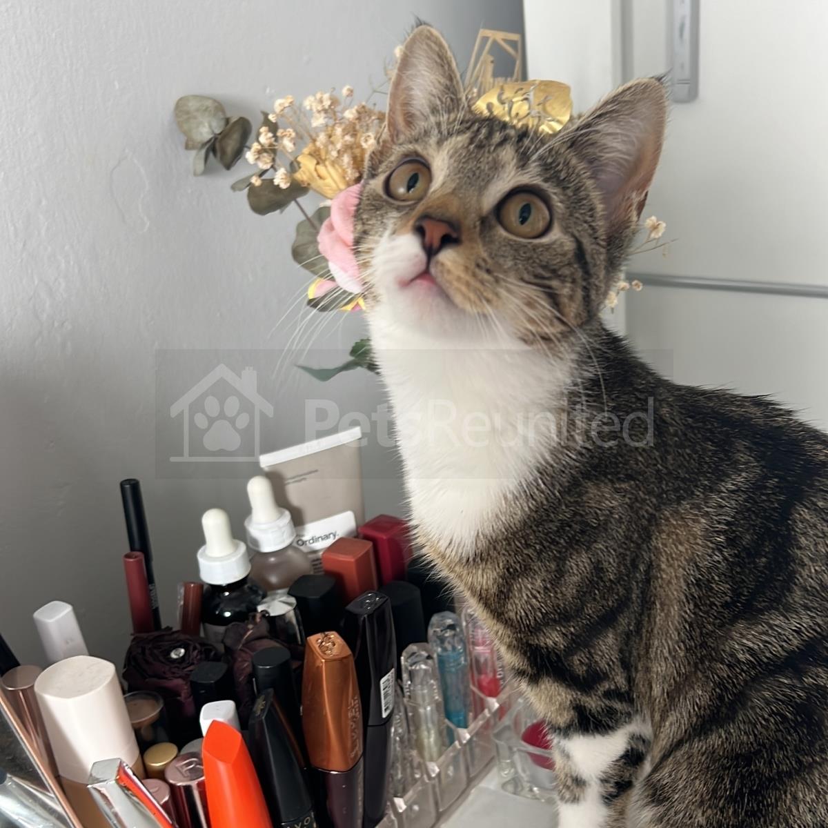 Tabby brown and white cat