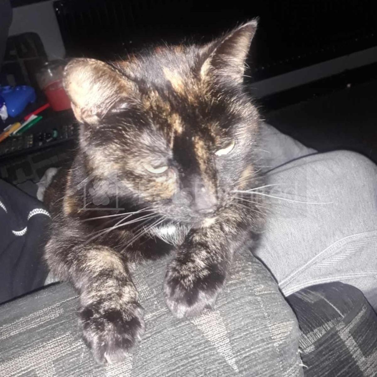Tortoiseshell and white Domestic short-haired cat