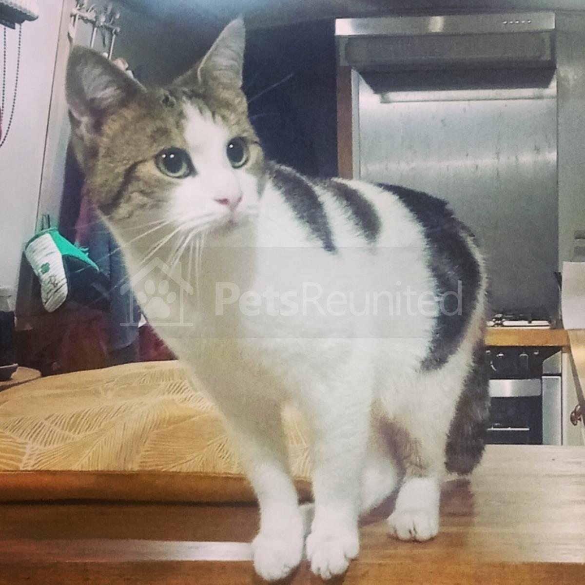 White with Brown Domestic short-haired cat