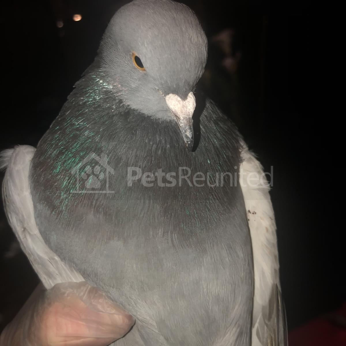 Other info: This is a privately owned racing pigeon landed in my garden INJURED HA SA LARGE WOUND UNDER LEFT WING VERY UNDERWEIGHT. Can be handled I have contacted the Royal pigeon racing support by emailing them they have advised me to keep the bird warm feed dry rice / corn flakes / bird seed (NO BREAD) to advertise on social media as the bird is owned