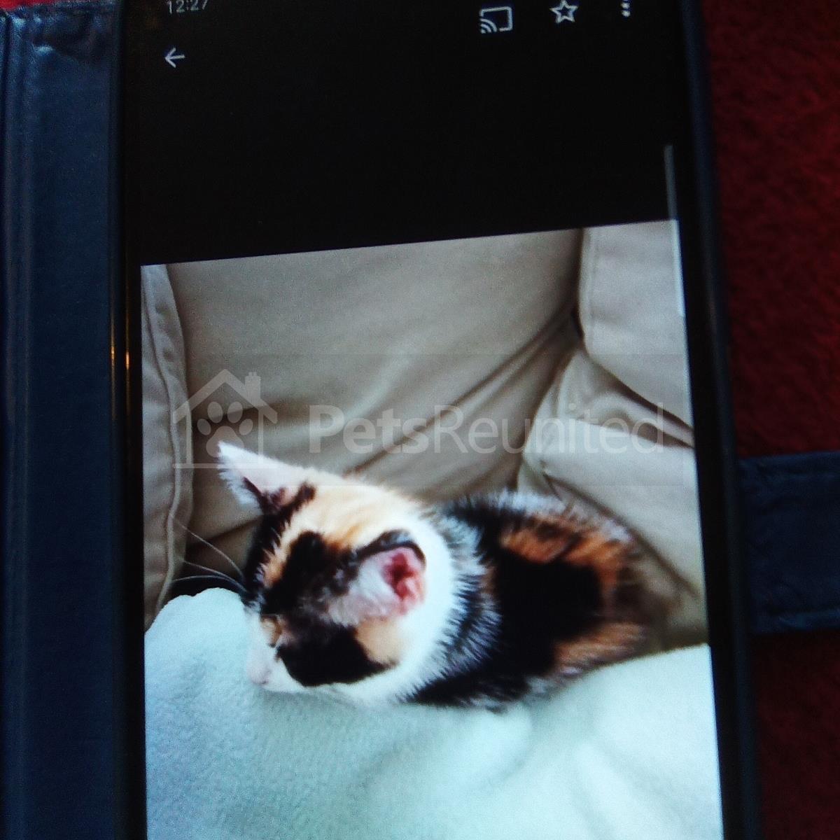 Tortoiseshell and white Domestic short-haired cat