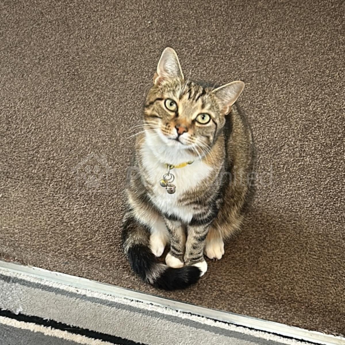 Tabby and white Domestic short-haired cat