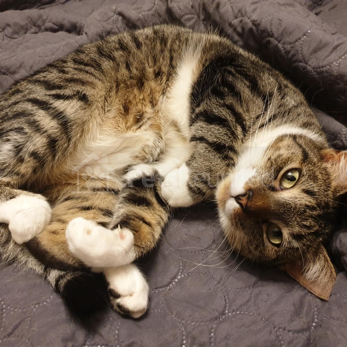 Tabby and white Domestic short-haired cat
