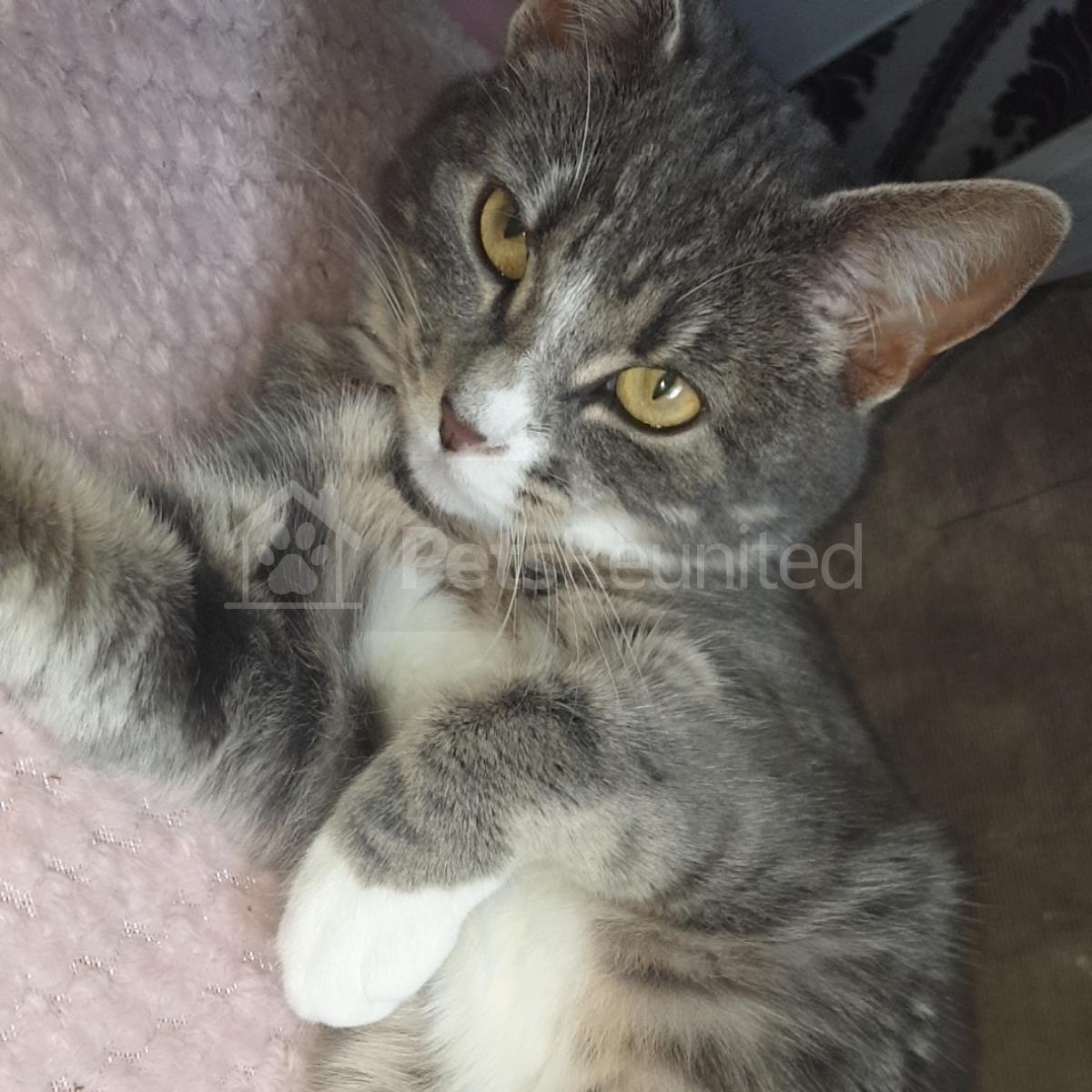 Tabby and white Domestic short-haired cat