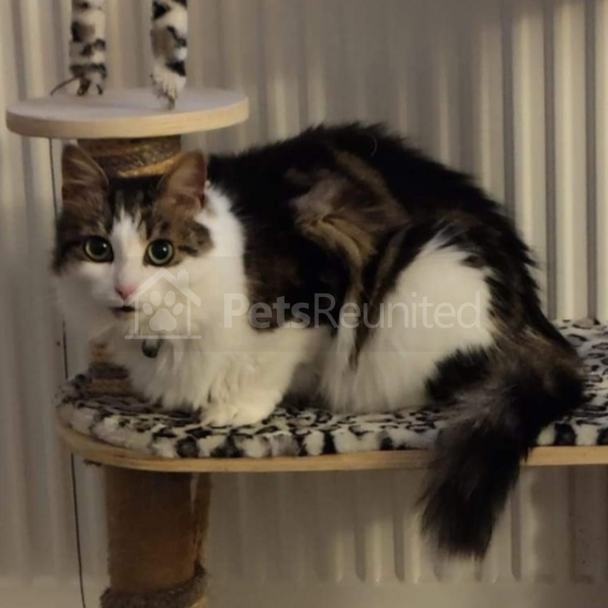 Tabby and white Domestic long-haired cat