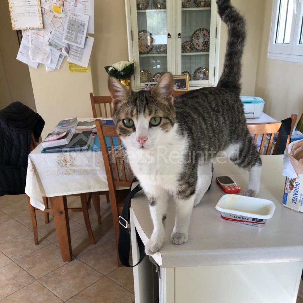 Tabby and white Domestic short-haired cat