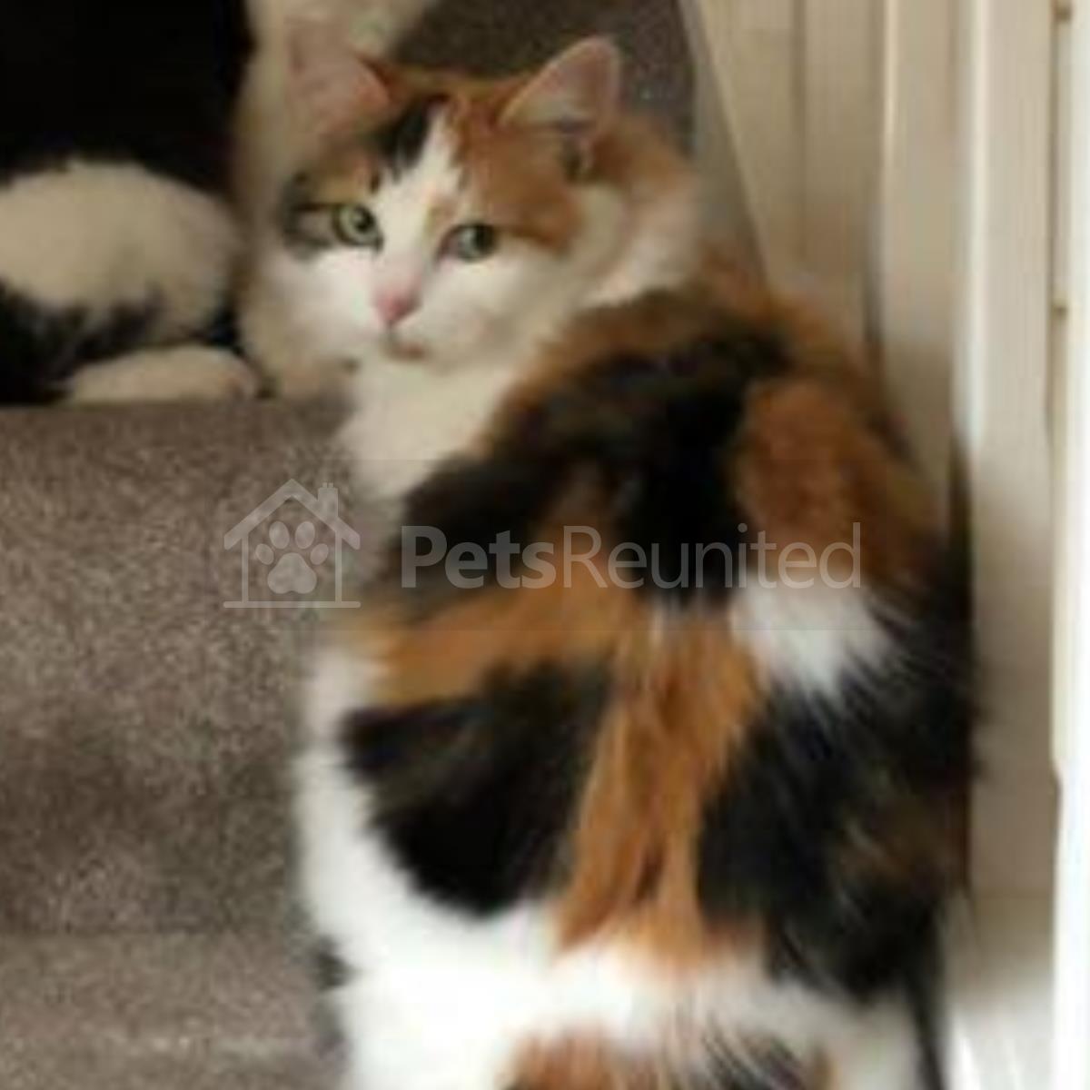 Tortoiseshell and white Domestic long-haired cat