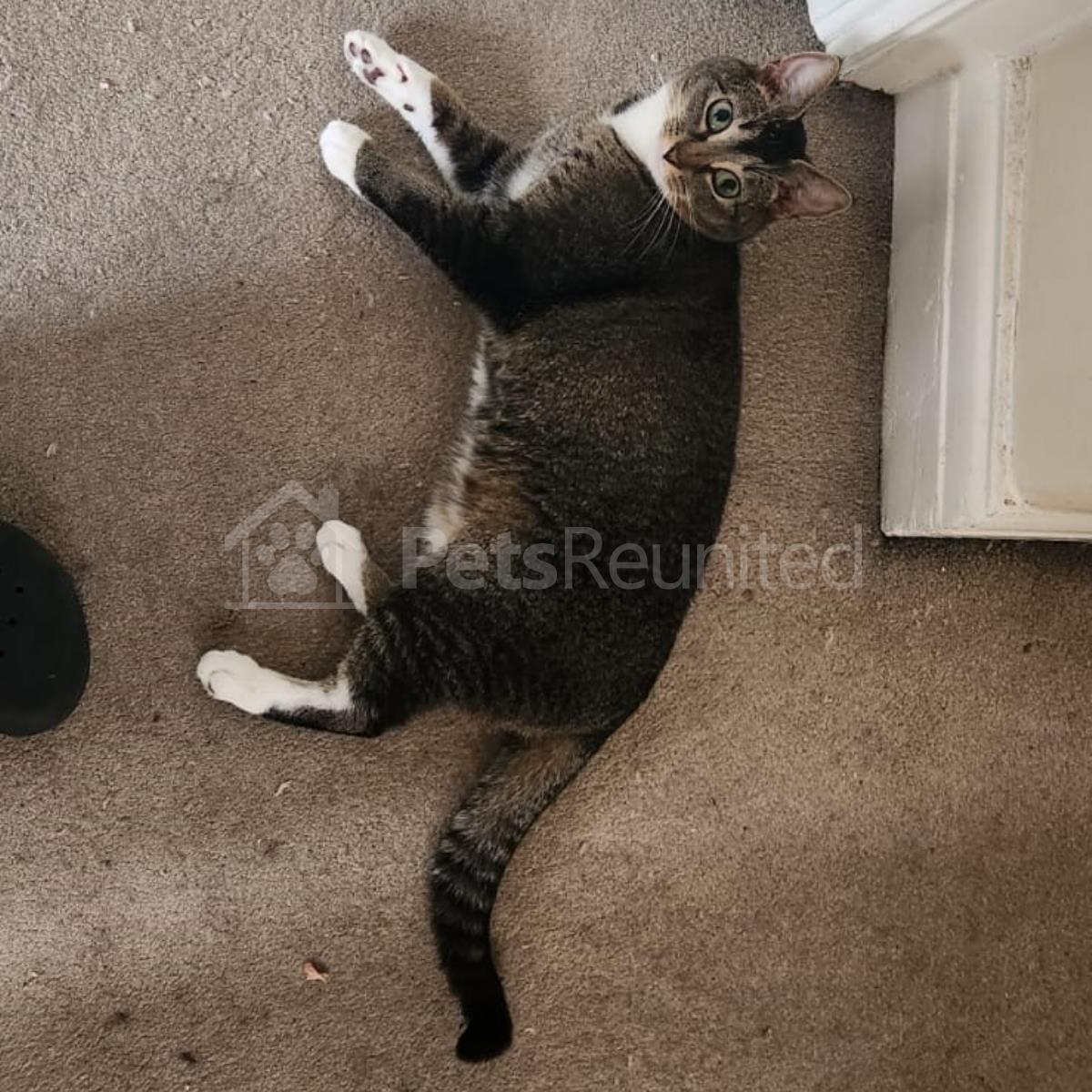 Tabby and white Domestic short-haired cat