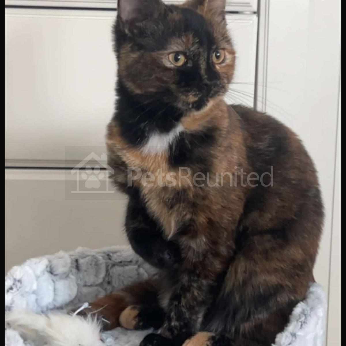 Tortoiseshell and white Domestic short-haired cat