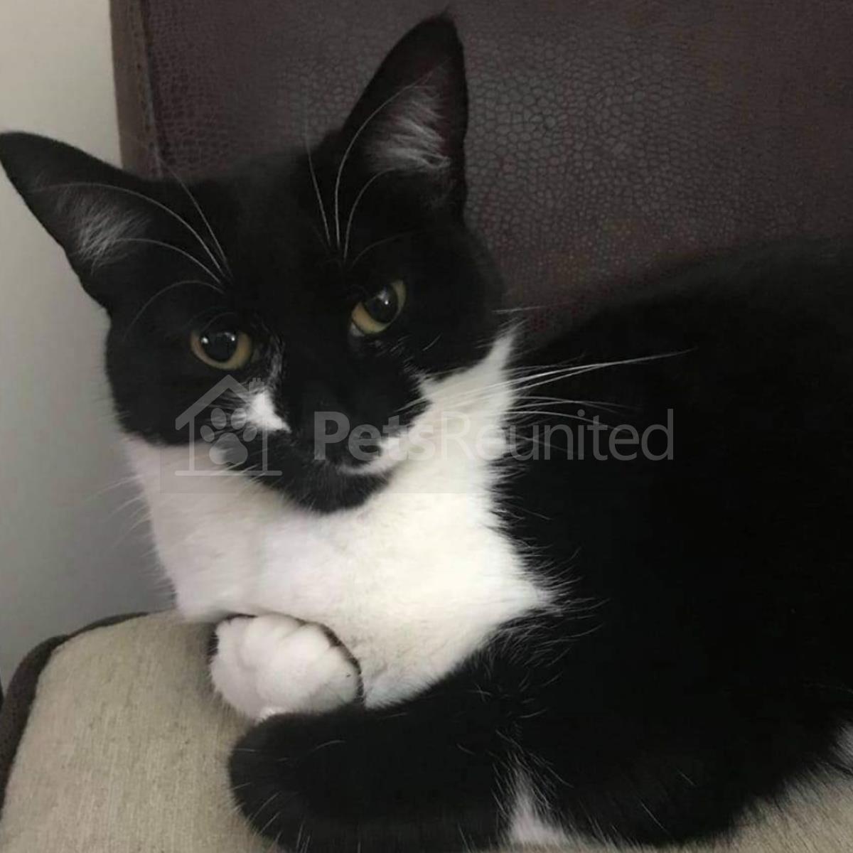 Black and white, partial tabby cat
