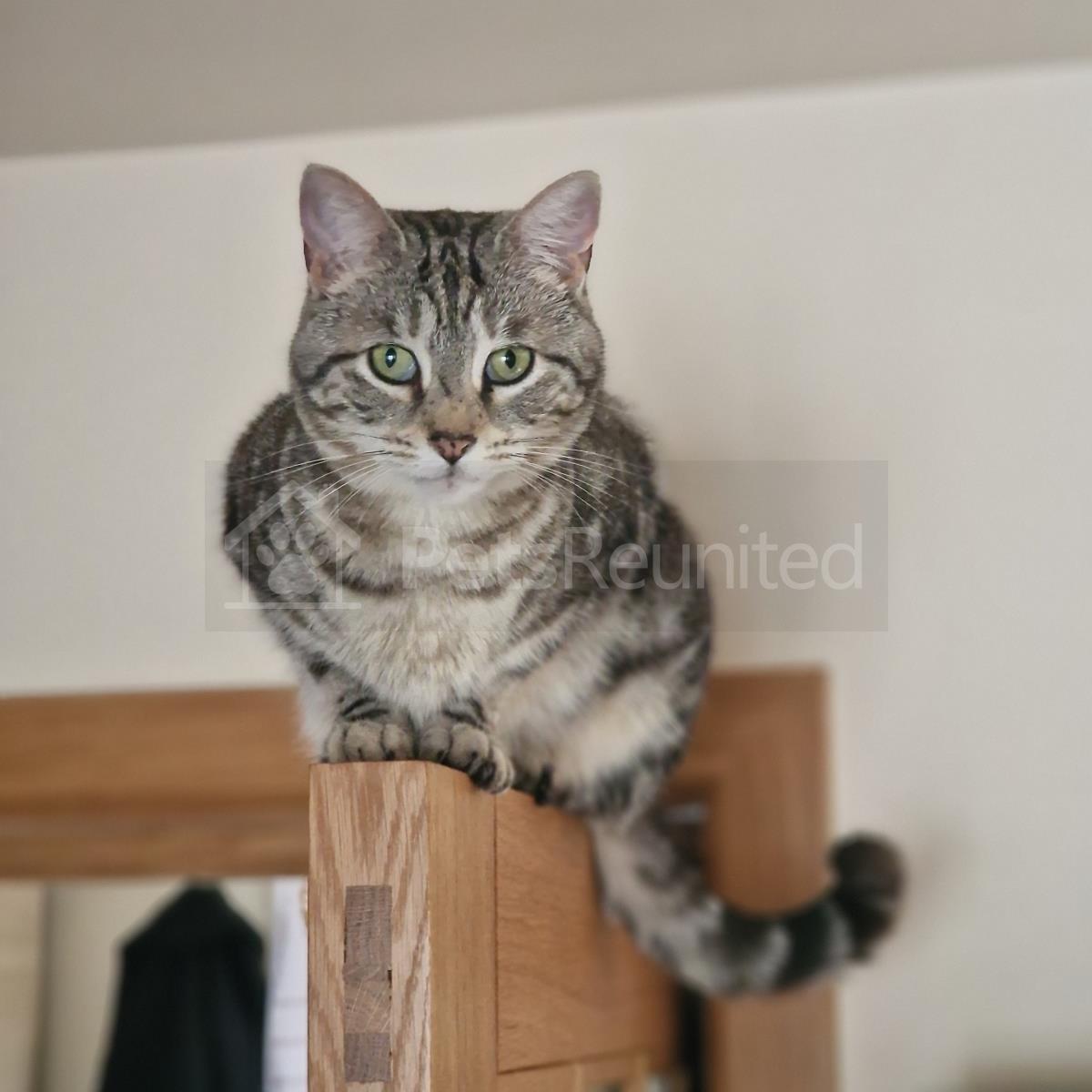 Grey brown and white cat