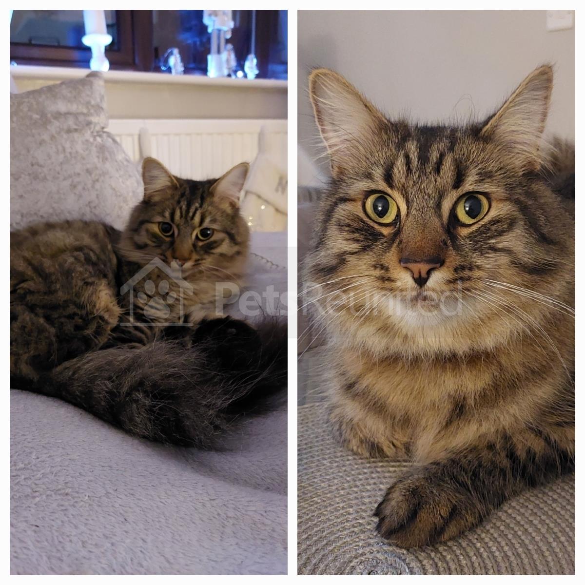 Tabby and white Domestic long-haired cat