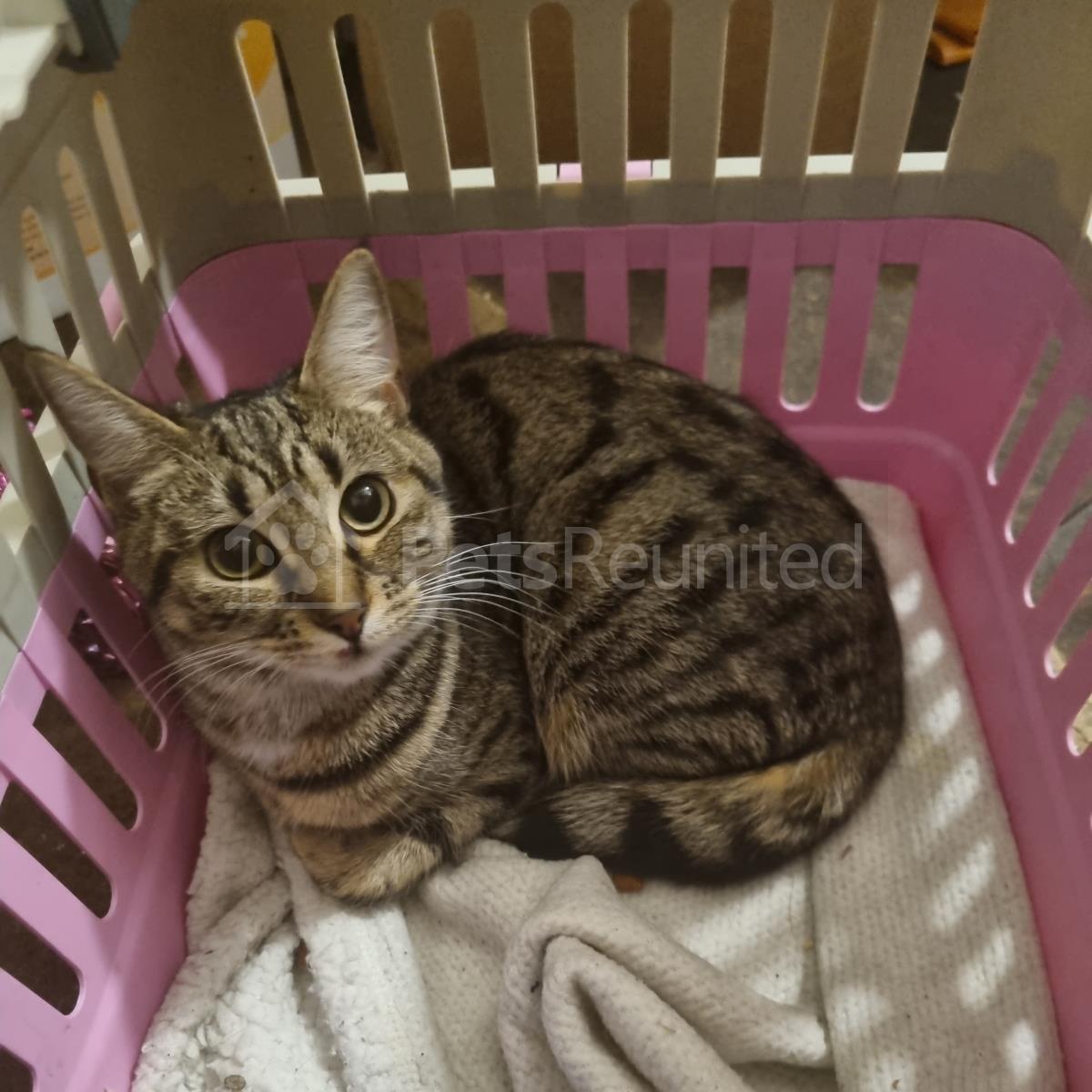 Brown tabby/ patchy cat
