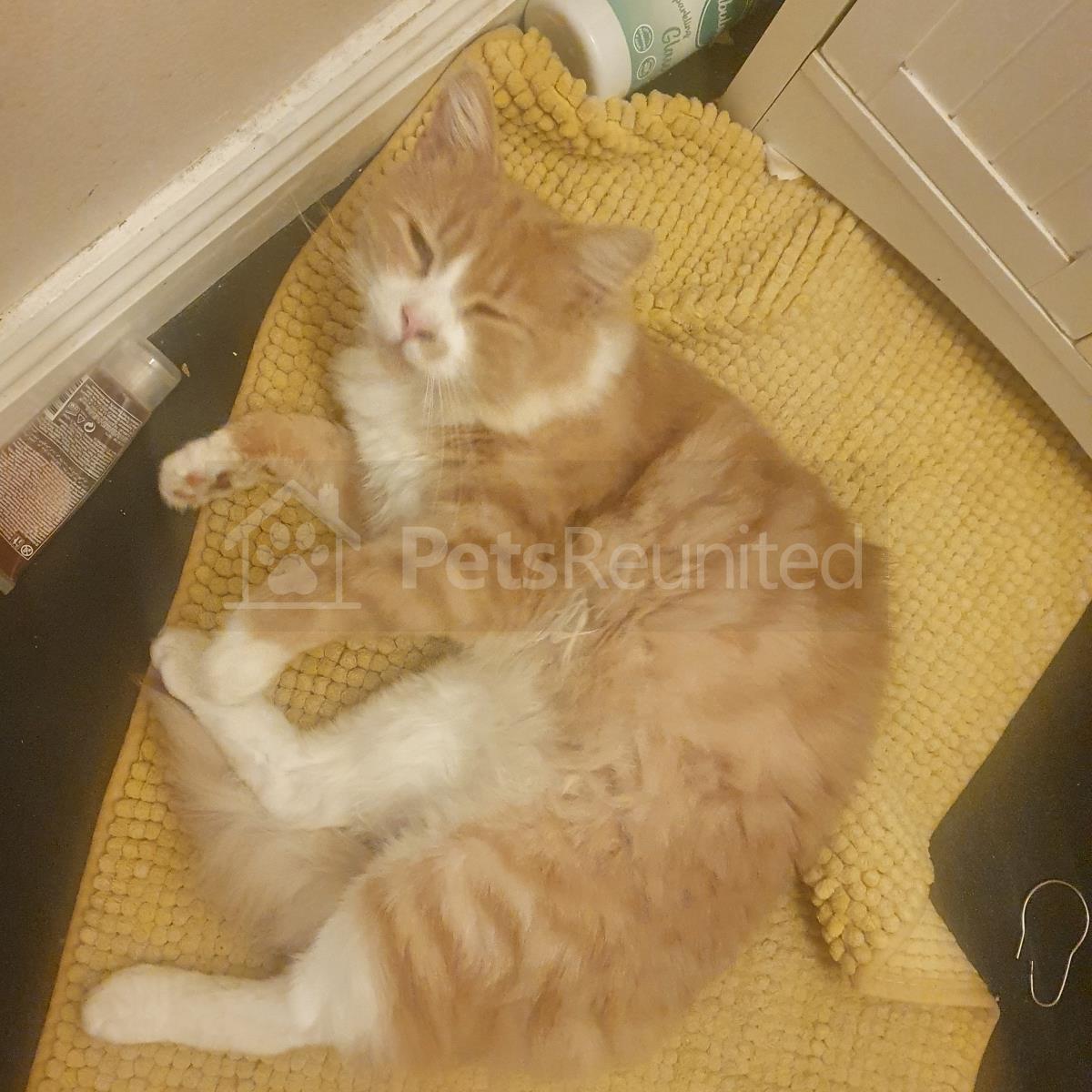 Ginger, white and black. Domestic long-haired cat