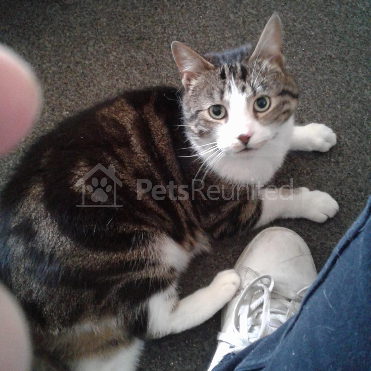 White with Brown Domestic short-haired cat