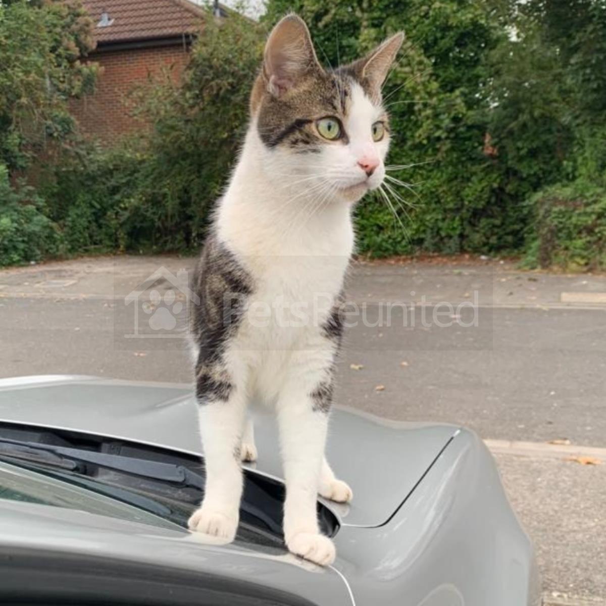 Tabby and white Domestic short-haired cat
