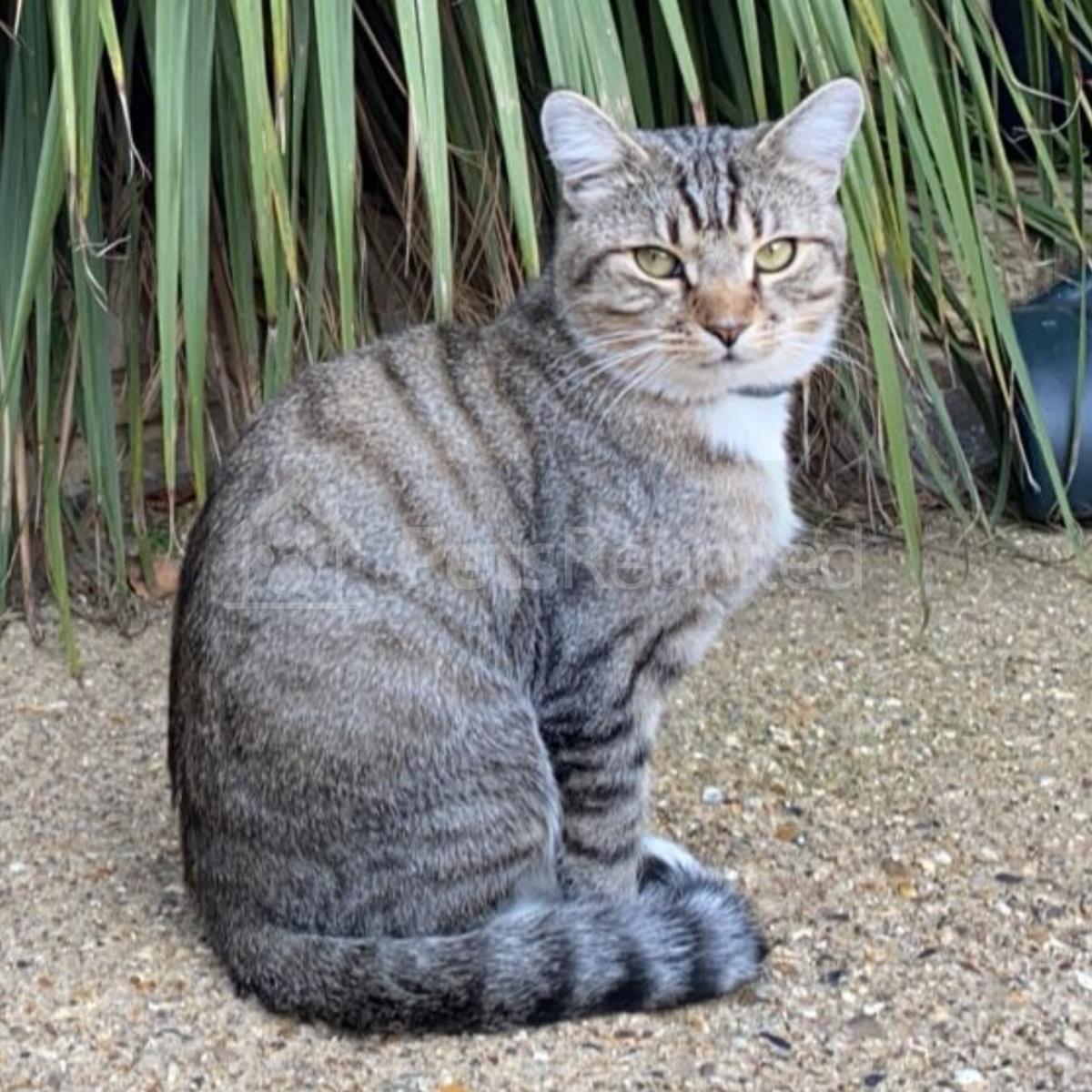 Tabby and white Domestic short-haired cat