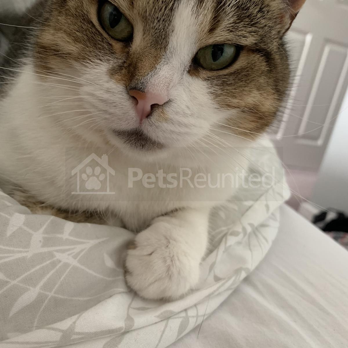 Tortoiseshell and white Domestic short-haired cat