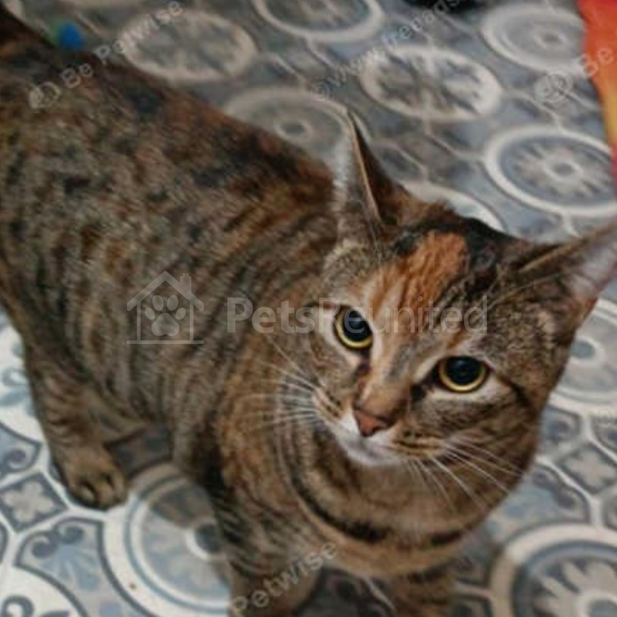 Mixed brown, white and tan Domestic short-haired cat