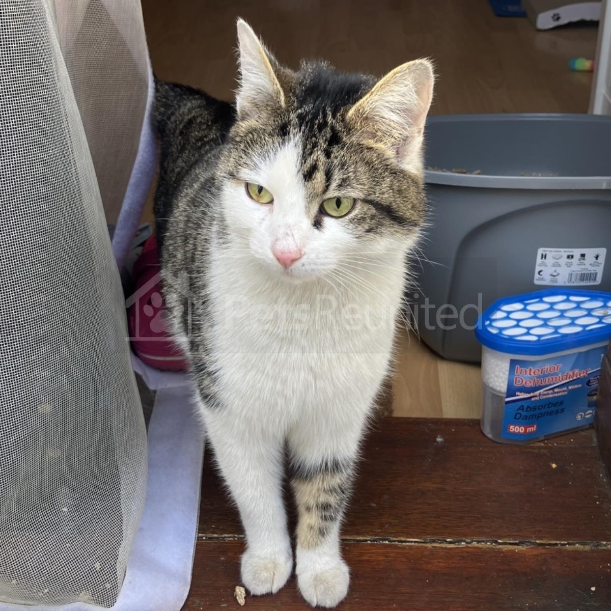 Tabby and white Domestic long-haired cat