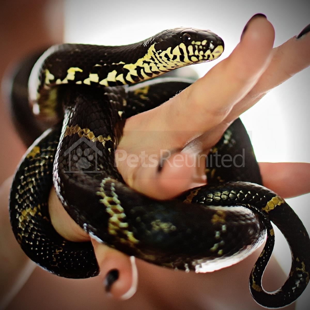 Black with buff stripes Rat snake