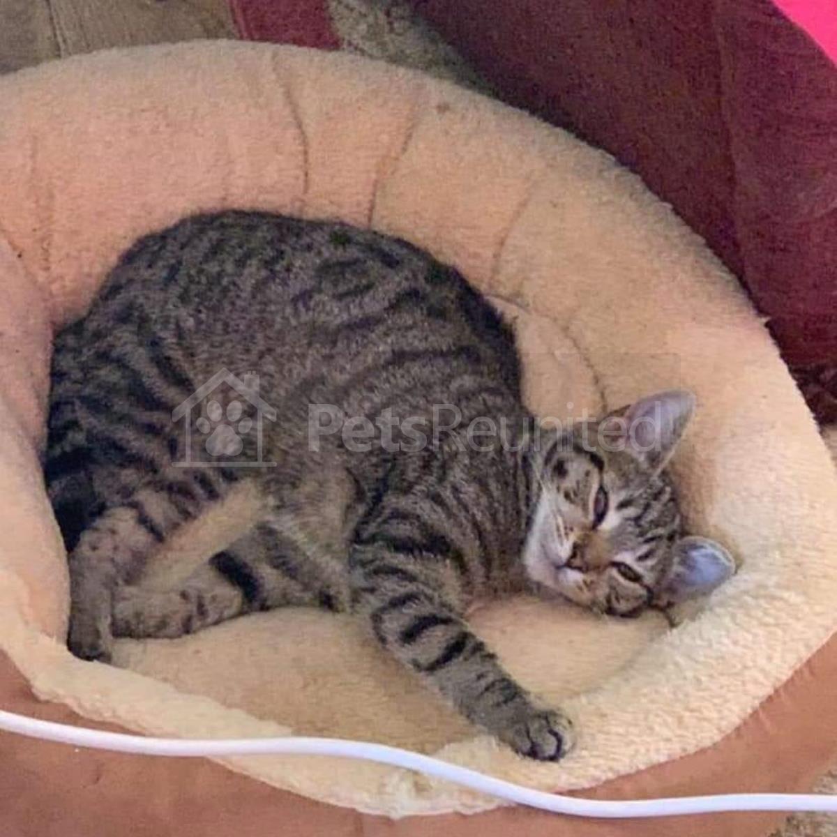 Tabby and white Domestic short-haired cat