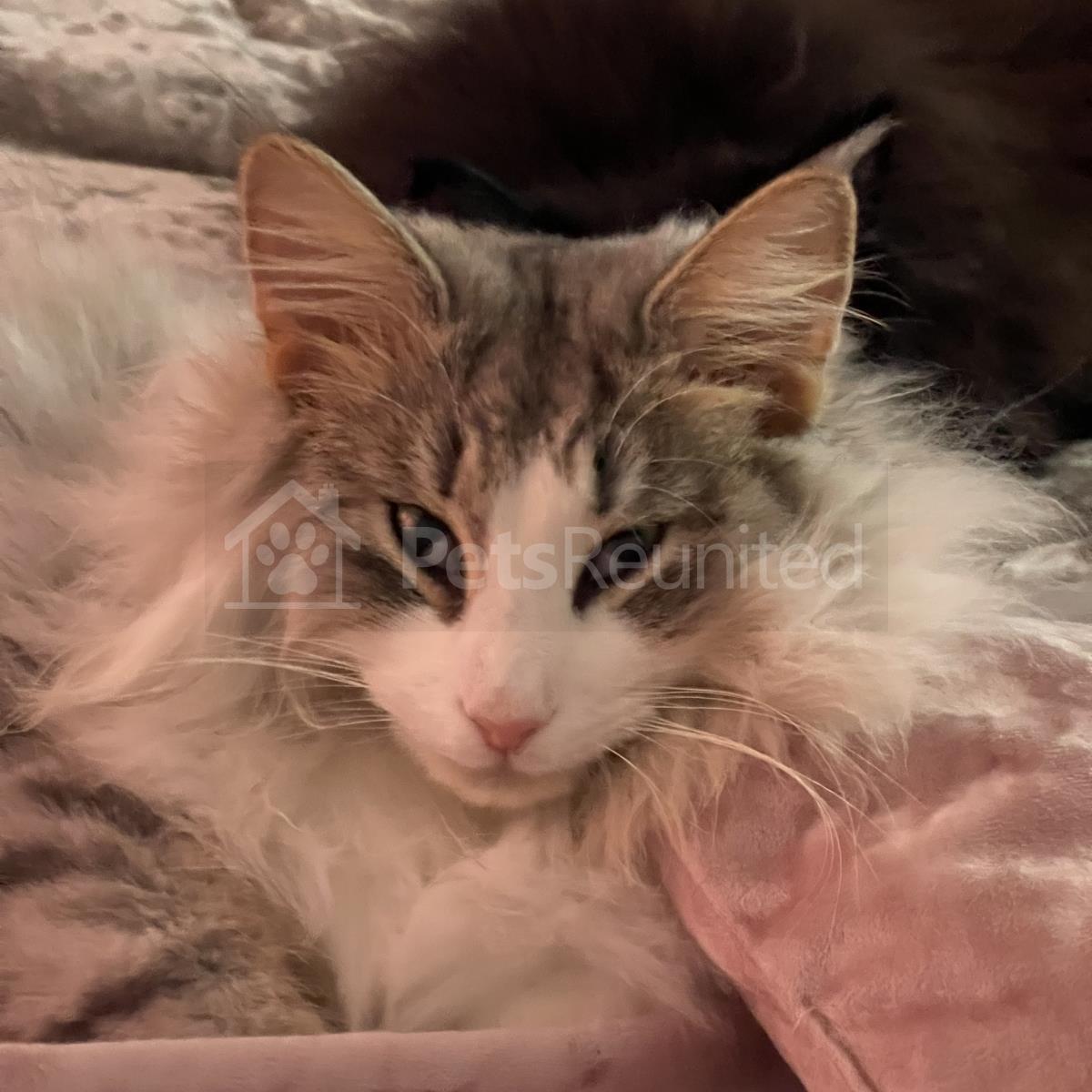 Tabby and white Domestic long-haired cat