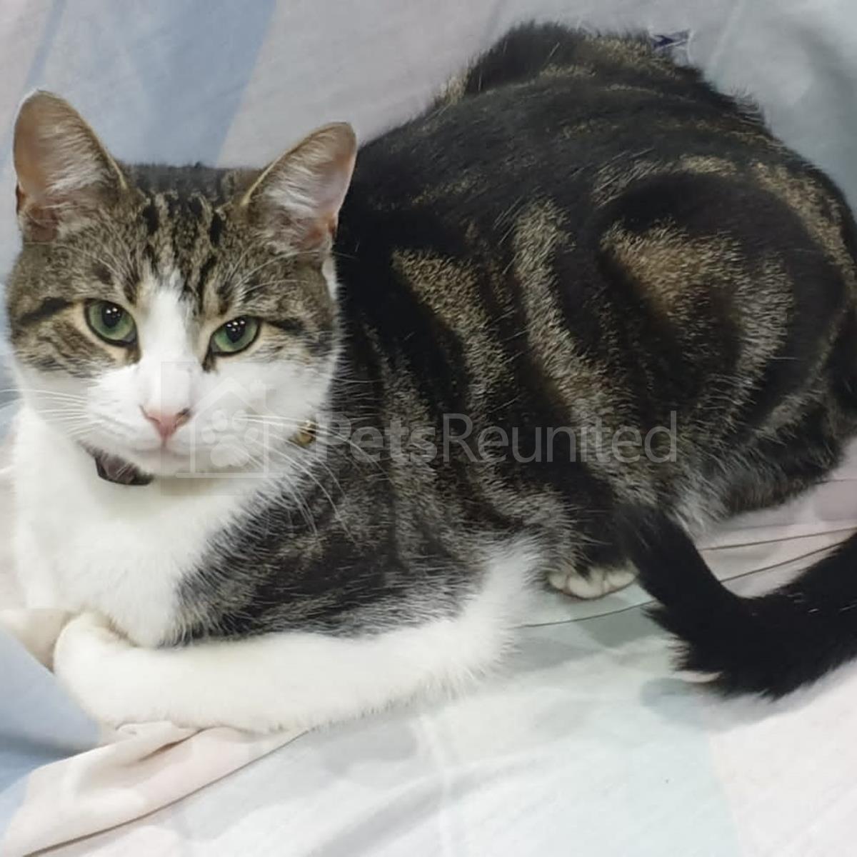 Tabby and white Domestic short-haired cat