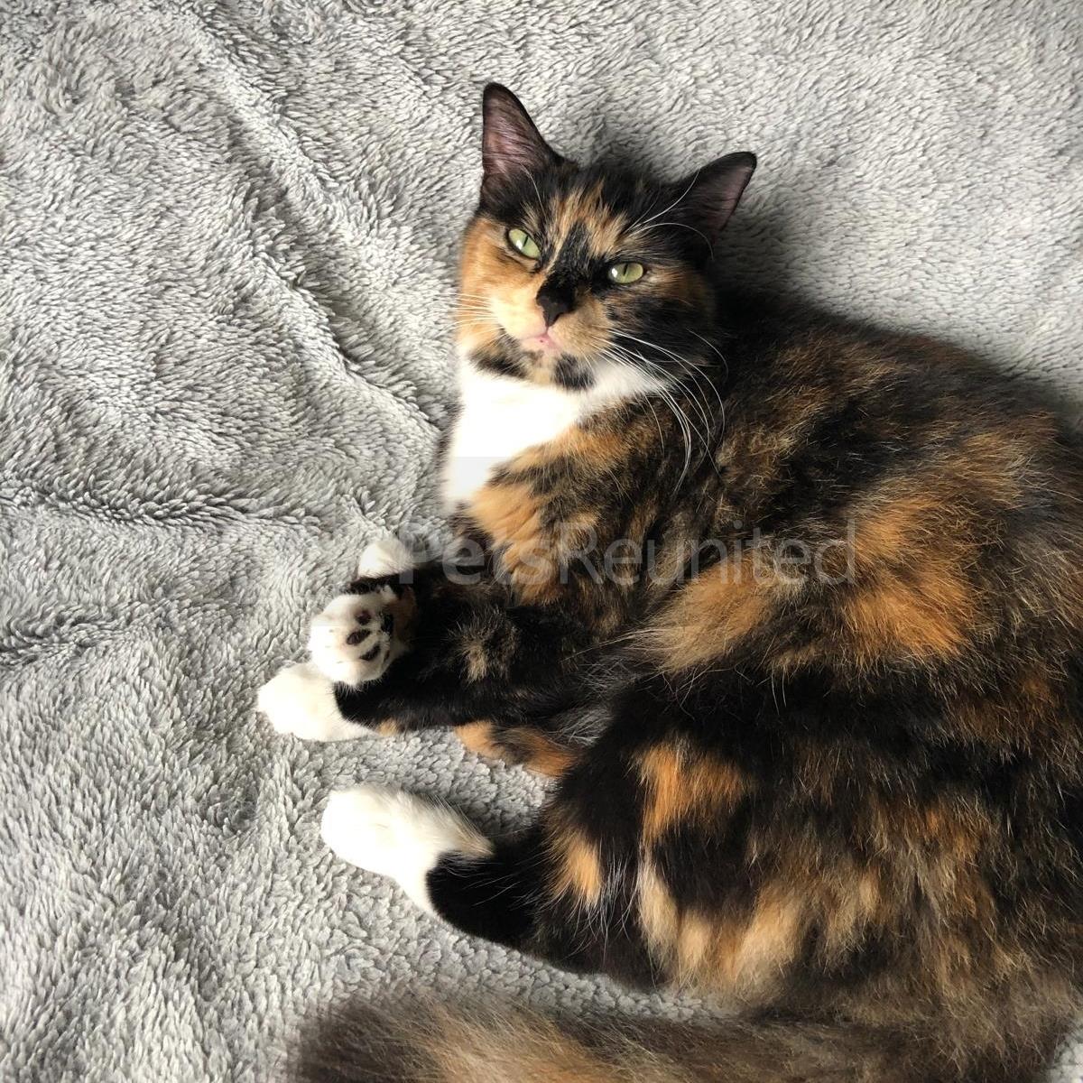 Tortoiseshell and white Domestic short-haired cat