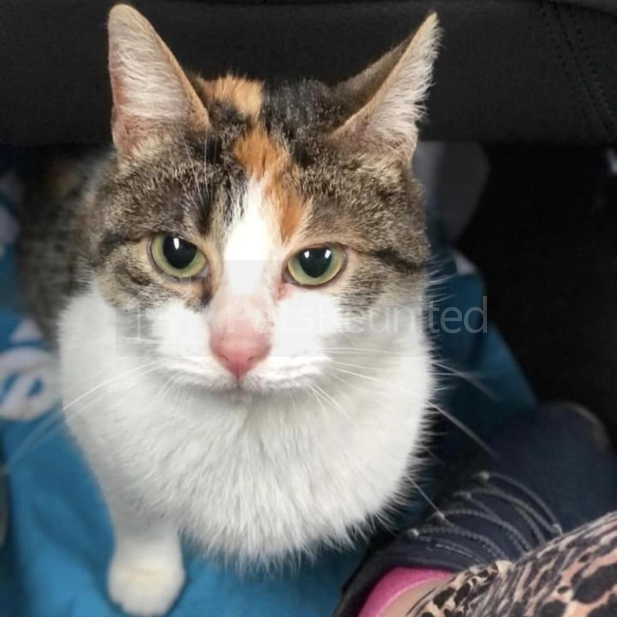 Tortoiseshell and white Domestic short-haired cat
