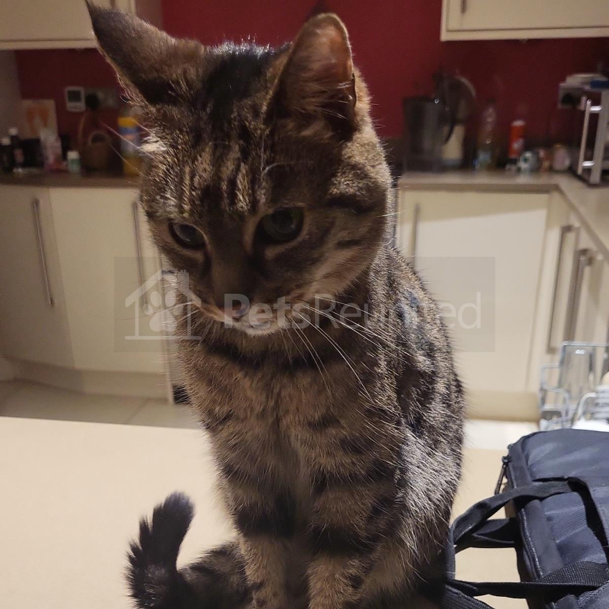 Tabby and white Domestic short-haired cat