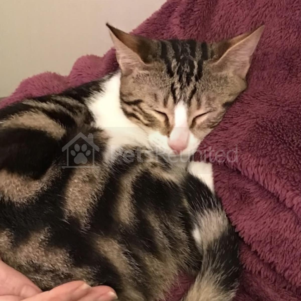 Tabby and white Domestic short-haired cat