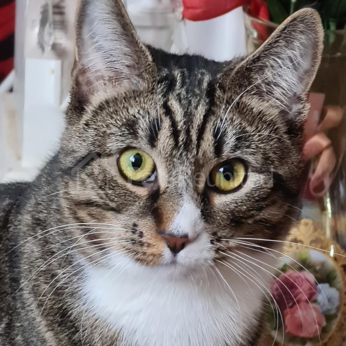 Tabby and white Domestic short-haired cat