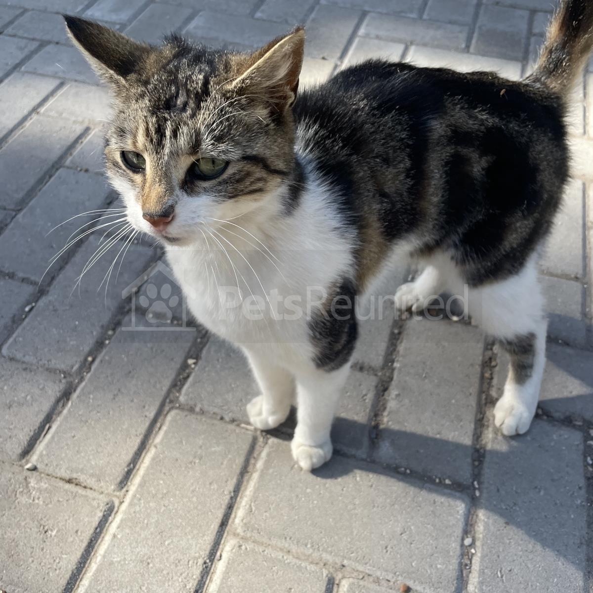 White, black, grey and brown cat