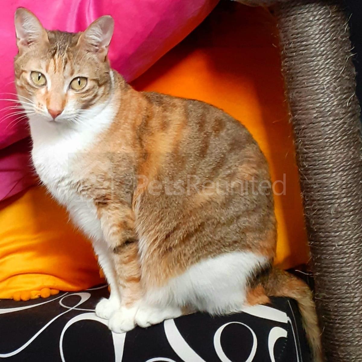 ginger, black and white cat