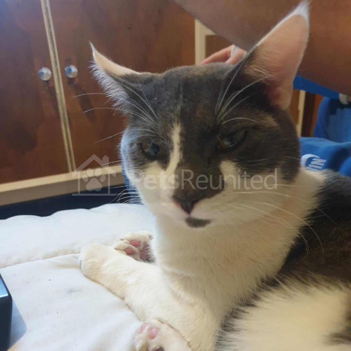 White in parts dark grey cat